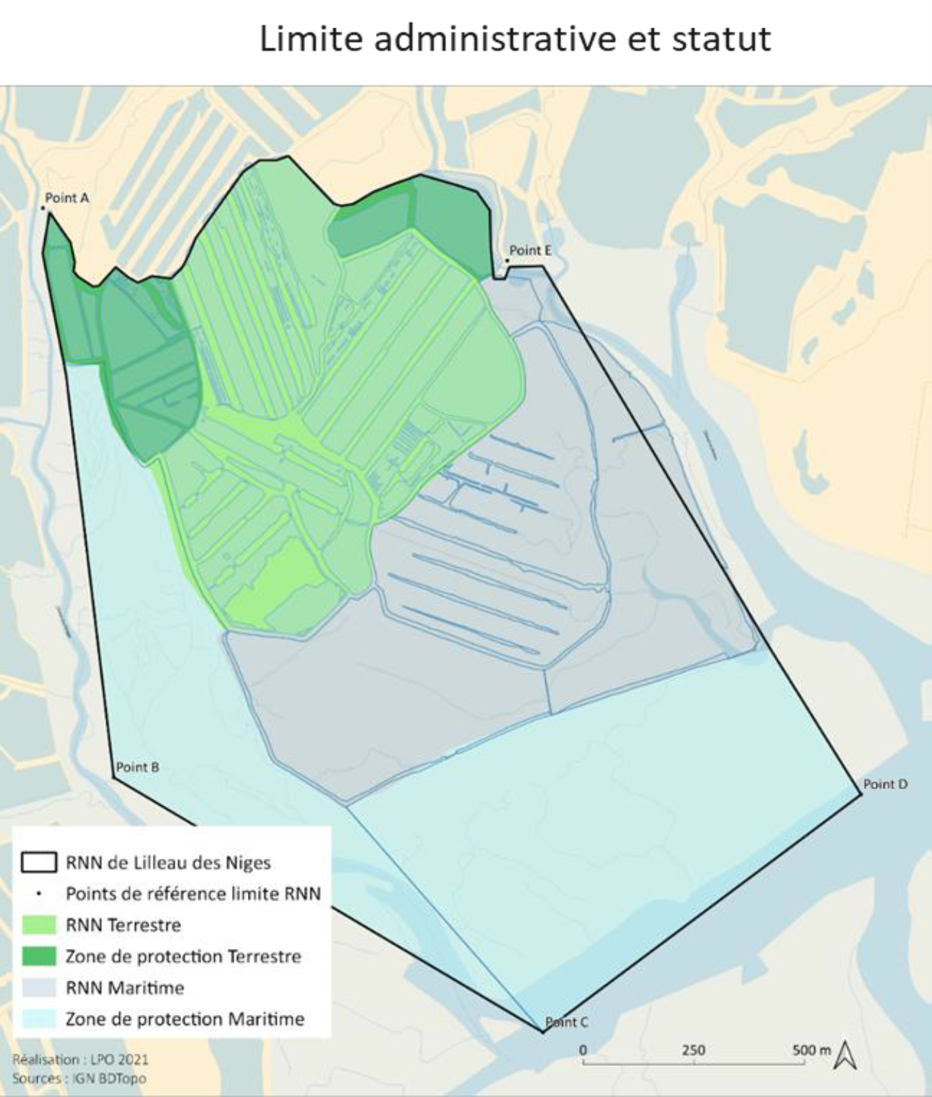 Avec une superficie de 133 hectares (69 ha de domaine terrestre et 64 ha de Domaine Public Maritime) dont l’accès terrestre et maritime est géré toute l’année par une réglementation précise s’appliquant aux Réserves naturelles. Une zone de protection de 102 hectares, qui correspond à une zone de transition où l’accès est possible à pied et en bateau à voile, sous certaines conditions. En tout, ce sont 235 hectares réservés aux oiseaux, et totalement gérés au quotidien par la LPO.